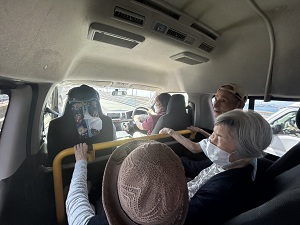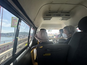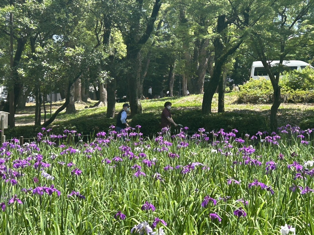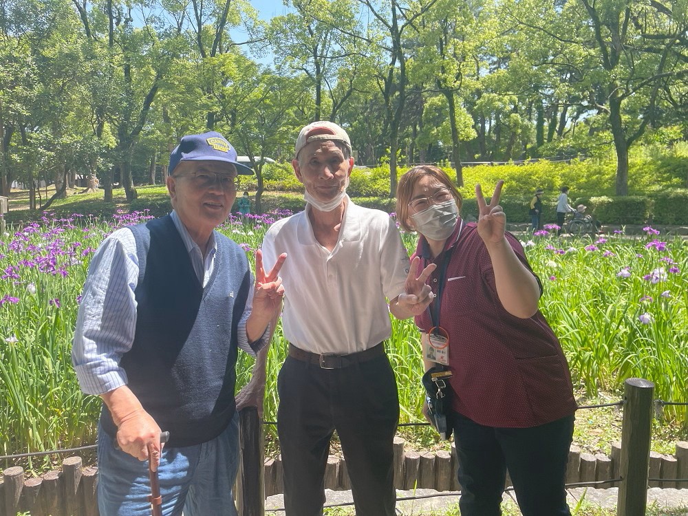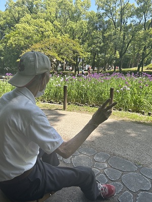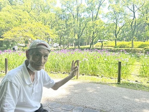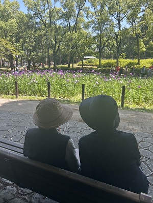 スタッフブログ サポートセンター本城 夜宮公園に菖蒲を見に行きました。小規模多機能 🚗 2025年06月12日 ドライブ日和で最高のお天気の中 夜宮公園に菖蒲を見に行きました 🚗 菖蒲を見ながら散策中 一休み中 日陰涼しい 女子会中 ワイワイ🎶 ( *´艸`) ( *´艸`) ( *´艸`) ニッコリ ピース (*^^)v 帰り道車窓風景 若戸大橋から風景を楽しみました。
