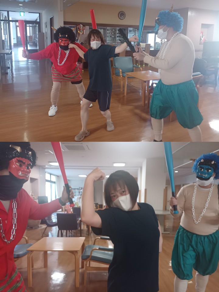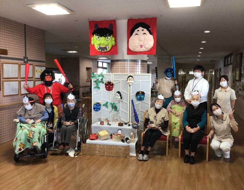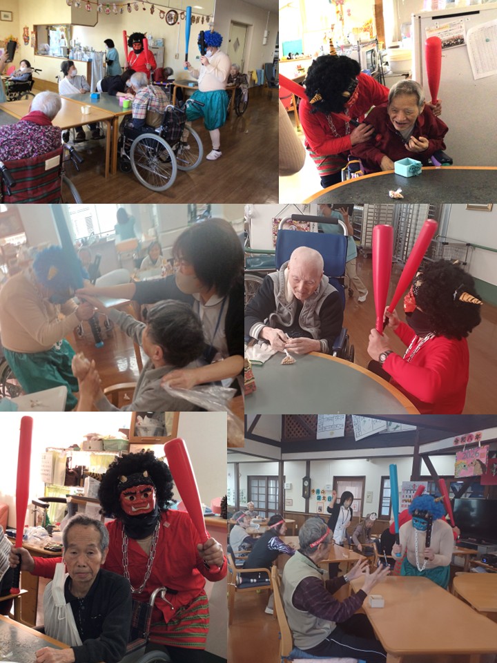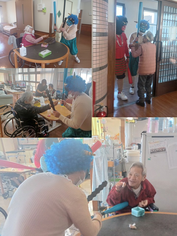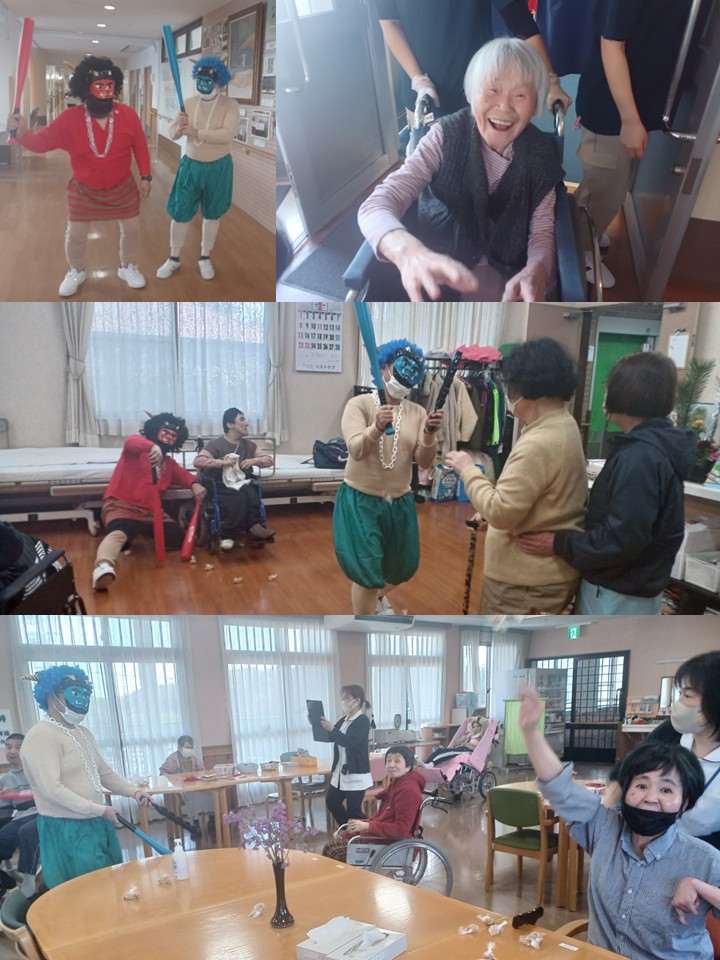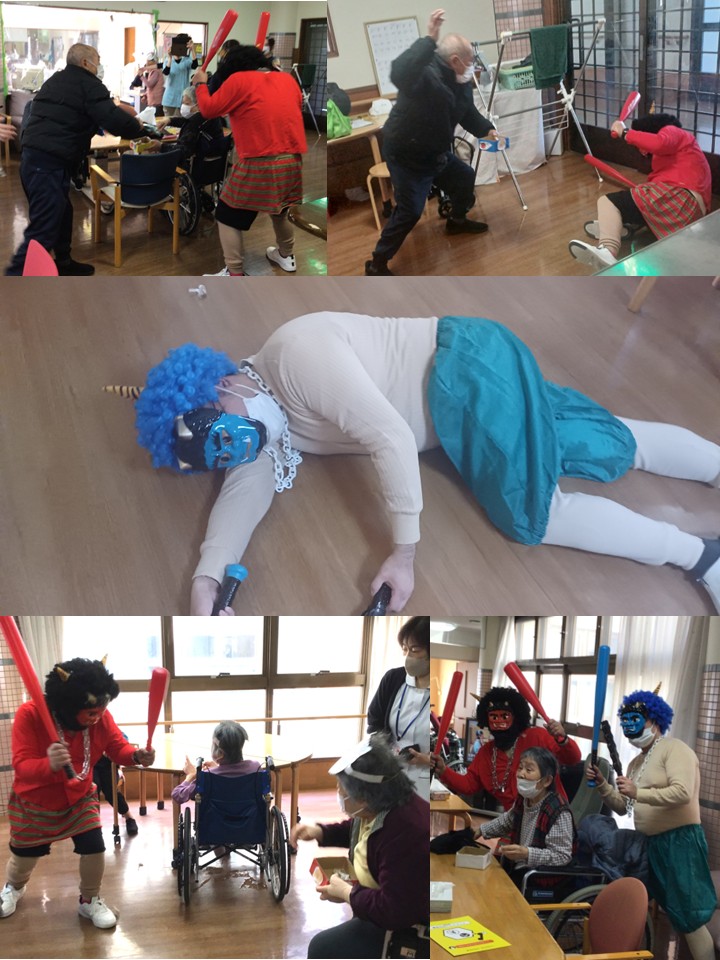 ひびき荘の節分は、毎年全部署をまわるので最後の方は鬼の勢いが無くなる傾向にありますが(´艸`*)
