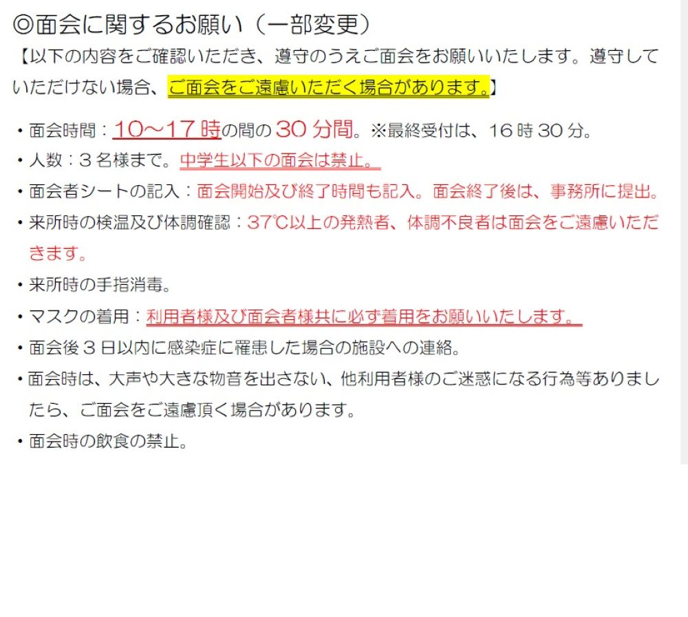 面会時間 変更のお知らせ