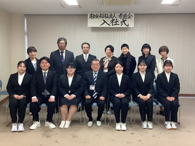 複合福祉施設 ひびき荘社会福祉法人 孝徳会 入社式新年度を迎え、桜が舞う心地よい時期になりましたね(*'ω'*) 社会福祉法人 孝徳会では3月25日に入社式を行い、新たに6名の新人職員が 私たちの仲 -